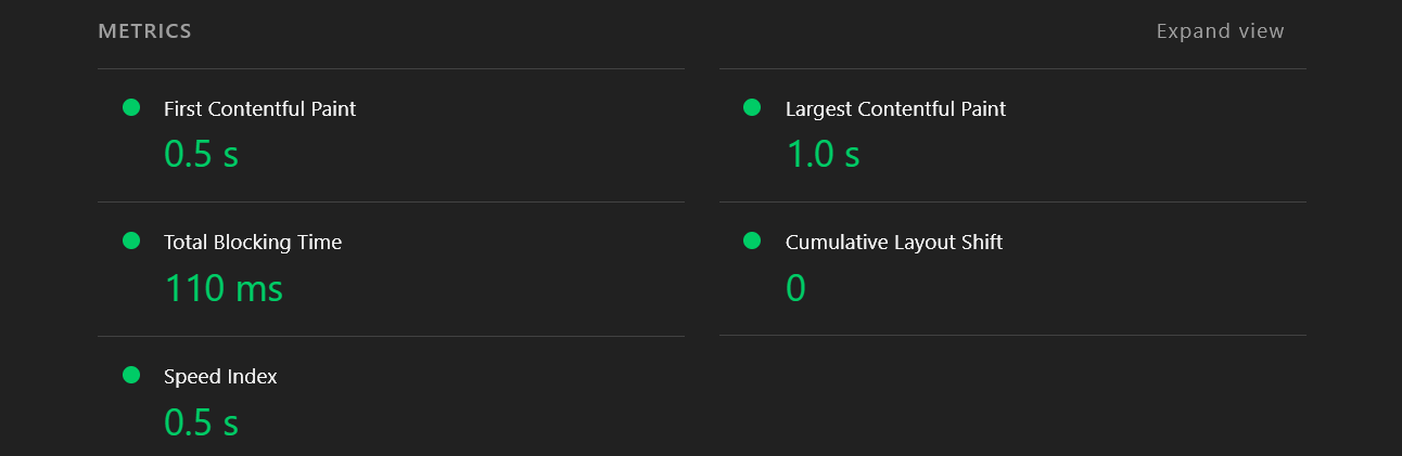 – un Largest Contentful Paint inférieur à 1 seconde,